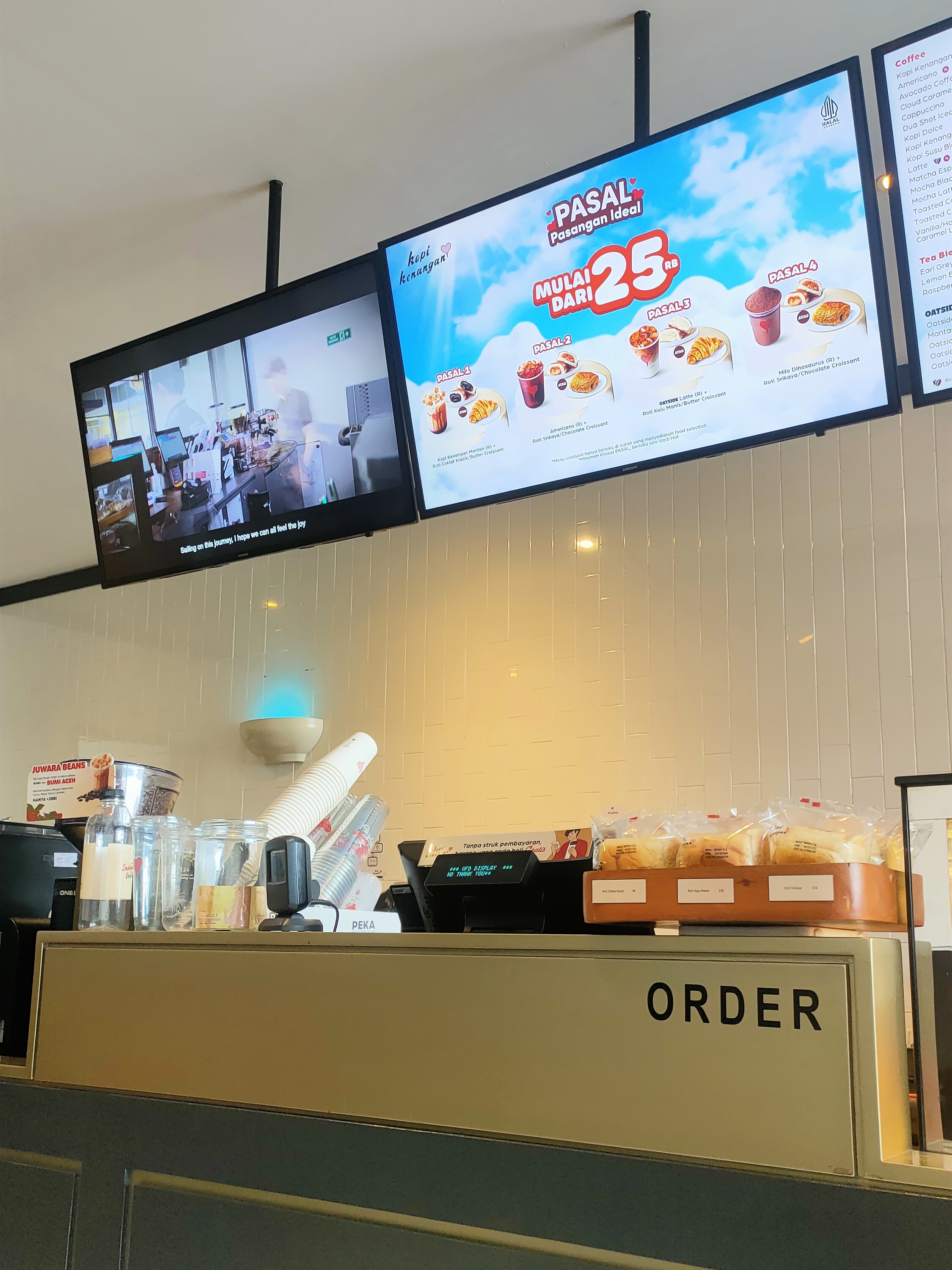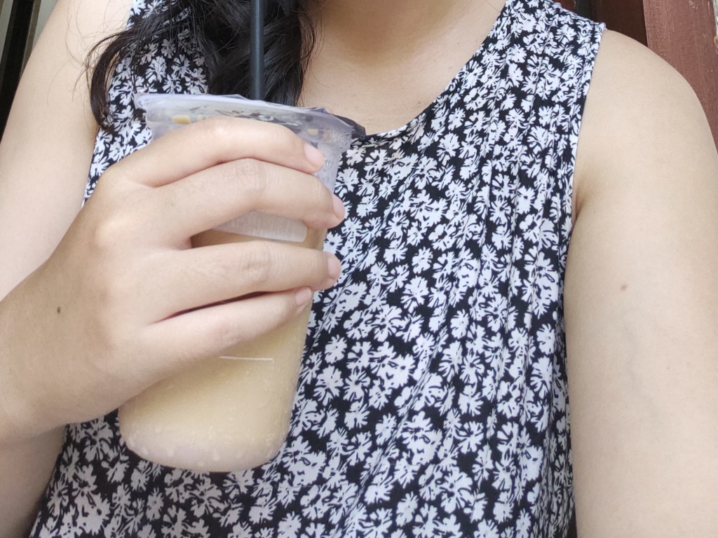 Pulang dari supermarket, aku membali es kopi.